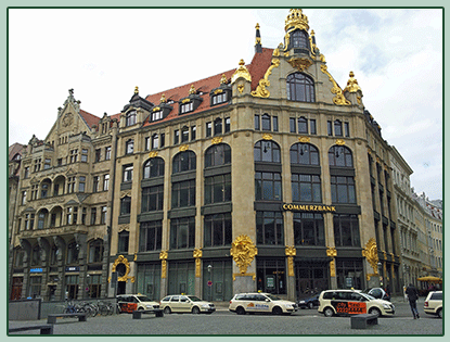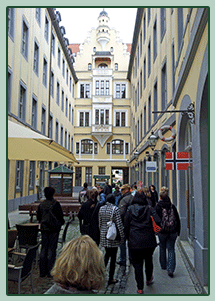 Die Spuren durch Krieg und sozialistische Vernachlässigung sind weitestgehend beseitigt. Leipzig präsentiert sich hier von einer reizvollen Seite. Der mit Handel gegründete Reichtum vor einigen hundert Jahren läßt sich erahnen. Heute ist mit viel Fleiß, ab auch mit beachtlichen Mitteln von privater, wie auch staatlicher Seite der Versuch gemacht worden, die alte Pracht wieder herzustellen. Ein neuerlicher Besuch ist zu empfehlen. |